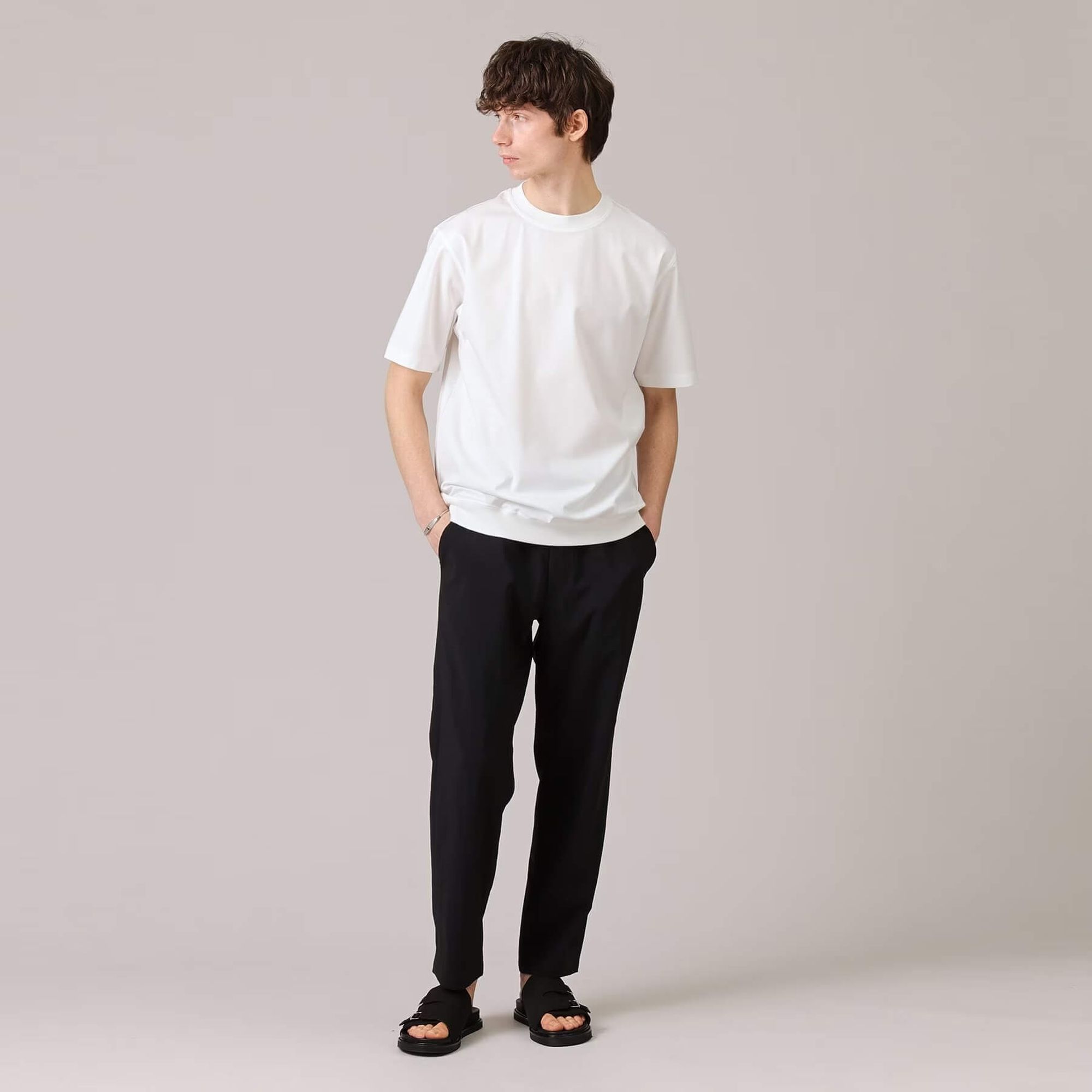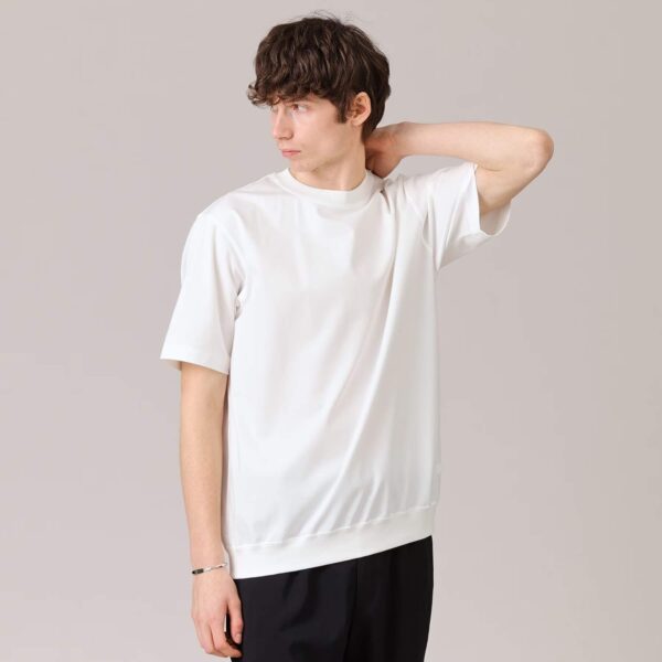 เสื้อคัตแอนด์โซว์ทรงหลวม ผลิตจากผ้าพันช์เนื้อแน่นถักด้วยเกจสูง พื้นผิวของผ้าผ่านกระบวนการเมอร์เซไรซ์เพื่อกำจัดขนละเอียด ทำให้มีประกายเงางามและสัมผัสที่เรียบลื่น เหมาะสำหรับอากาศร้อนชายเสื้อแบบจั๊มพ์ให้ทรงที่พองและเบา ในขณะเดียวกันก็แนบกระชับ ไม่ดูรุ่มร่าม อีกทั้งยังช่วยปกปิดรูปร่างบริเวณหน้าท้องได้อย่างดี ด้วยดีไซน์ที่เรียบง่ายแต่โดดเด่น ทำให้เสื้อตัวสามารถนำไป Mix & Match กับสไตล์ต่างๆ ได้ง่าย เหมาะสำหรับการใส่ในชีวิตประจำวัน
