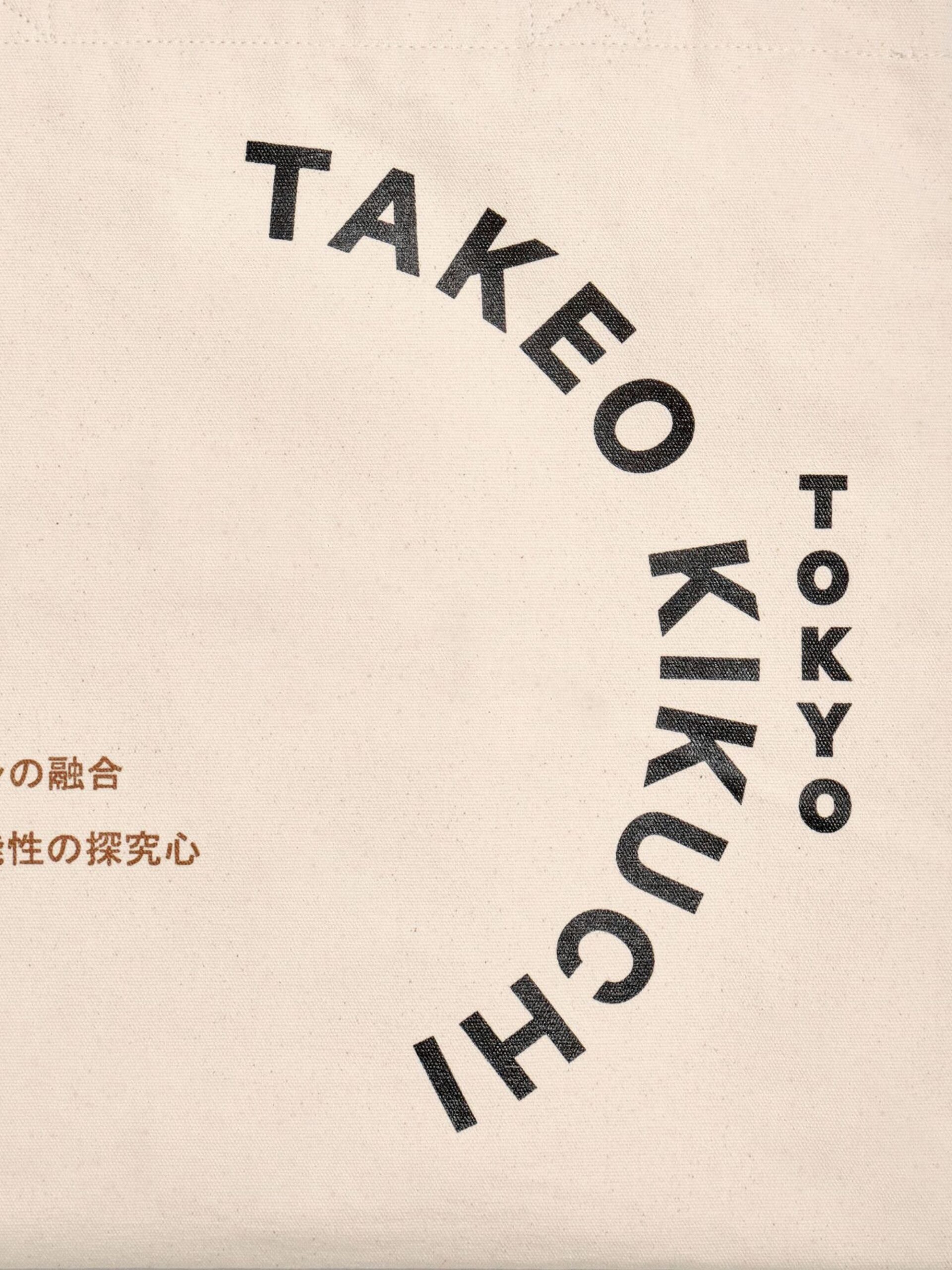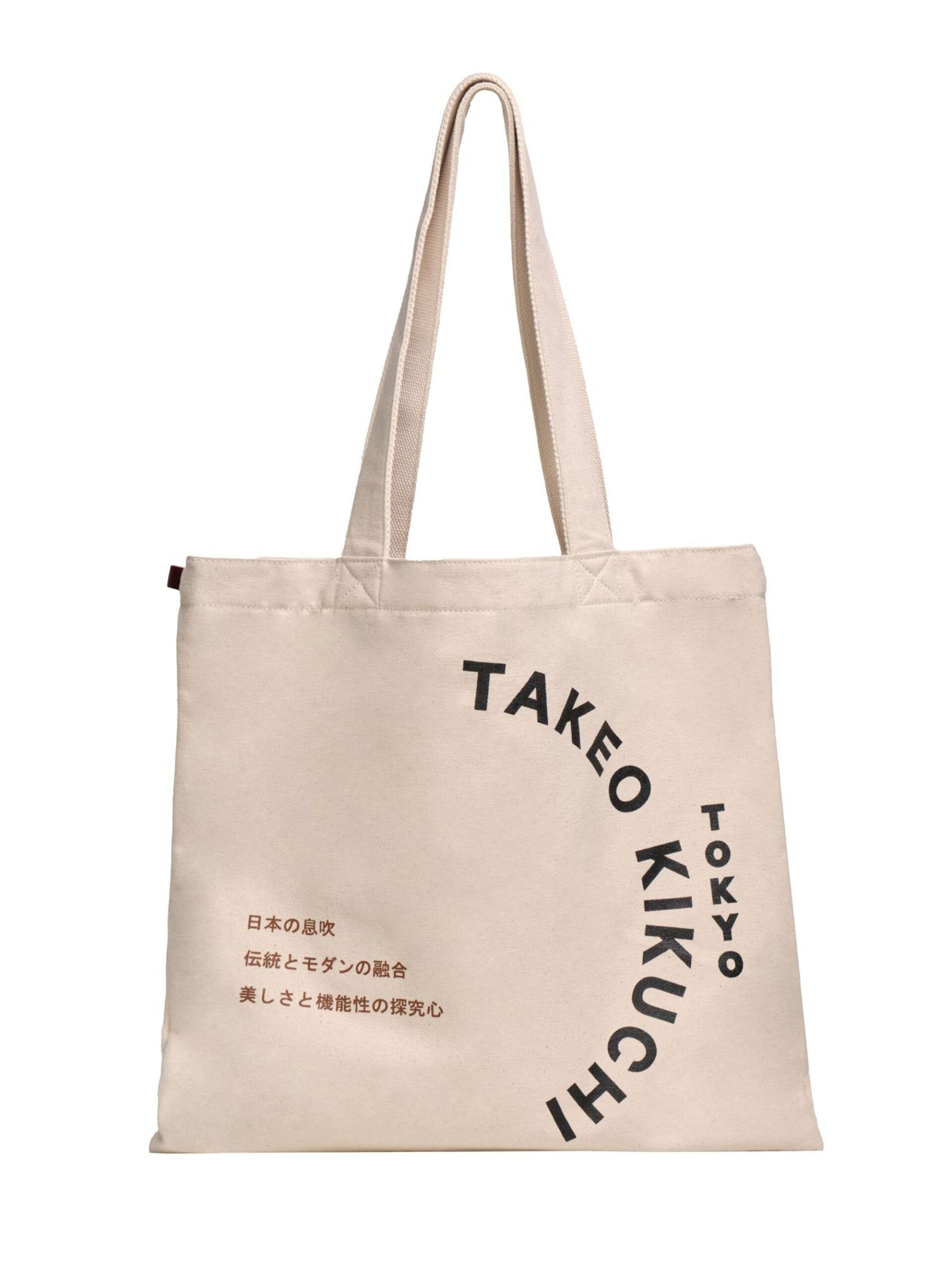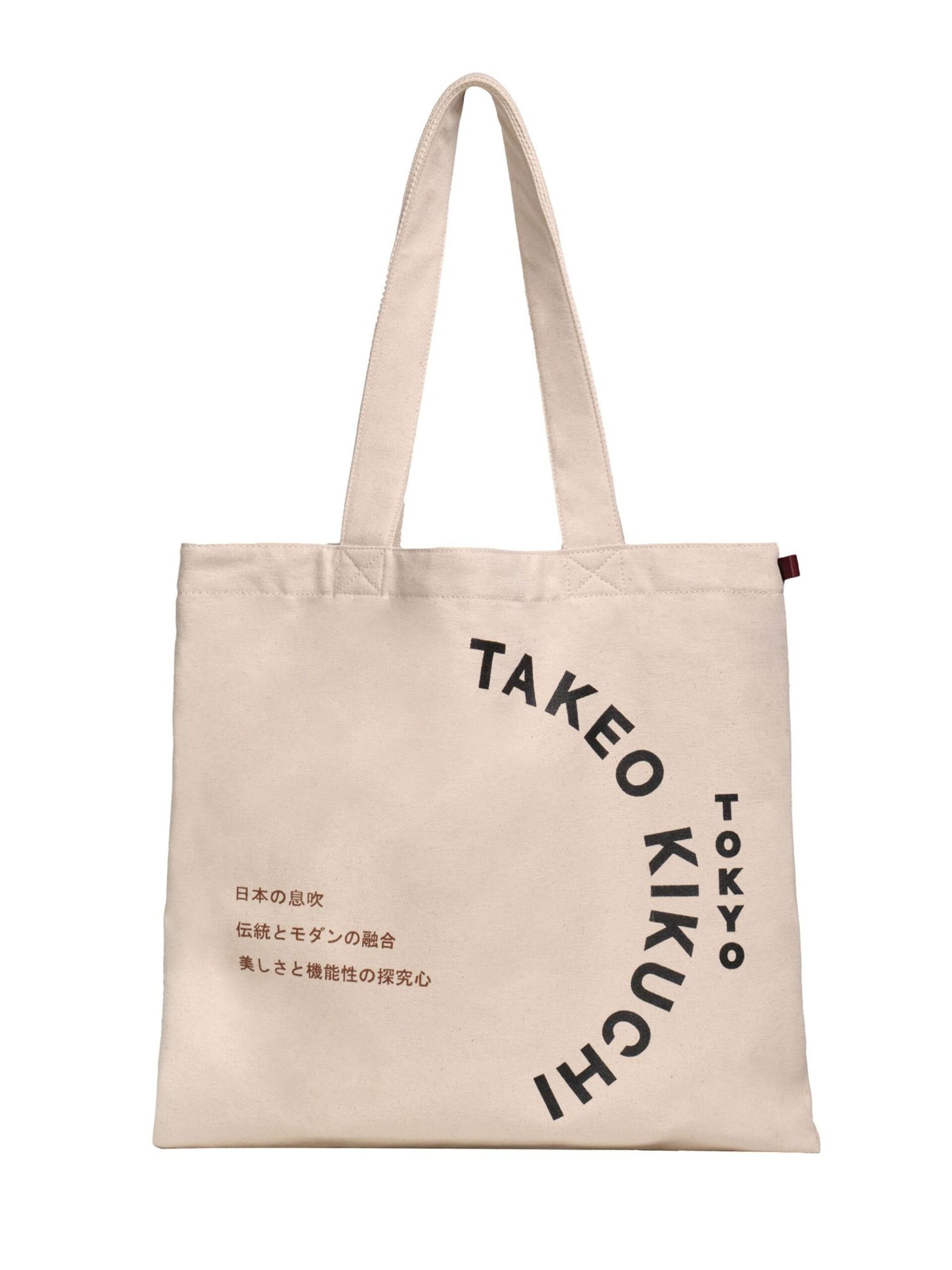 กระเป๋า Tote bag ที่ได้แรงบันดาลใจจากข้อความในเล่ม bible เพื่อฉลองครบรอบ 40 ปีของแบรนด์ TAKEO KIKUCHI โดยดีไซน์ในครั้งนี้จะเน้นไปที่งานกราฟฟิก และฟังก์ชั่นการใช้งาน กระเป๋าผ้าที่โดดเด่นด้วยดีไซน์ Font ขนาดใหญ่ให้สไตล์ Urban มีหนังแต่งสีแดงที่แทนความเป็นญี่ปุ่น มีกระเป๋าขนาดเล็กด้านใน และพิมพ์ทั้ง 2 ด้าน ทรงกระเป๋าออกแบบมาให้ใช้งานง่าย สะดวกสบายและแมทซ์ได้หลายลุค อีกทั้งยังช่วยลดโลกร้อนได้อีกด้วย