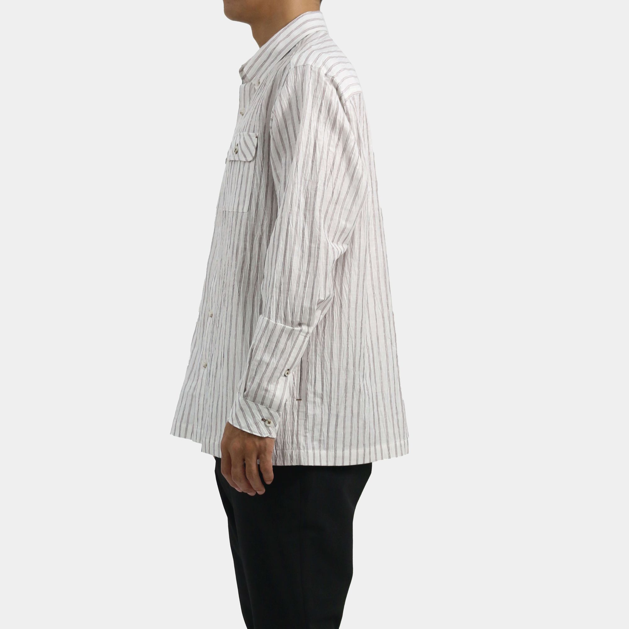 WHITE TEXTURED STRIPE CHECK OVERSIZED SHIRT (K8189201)