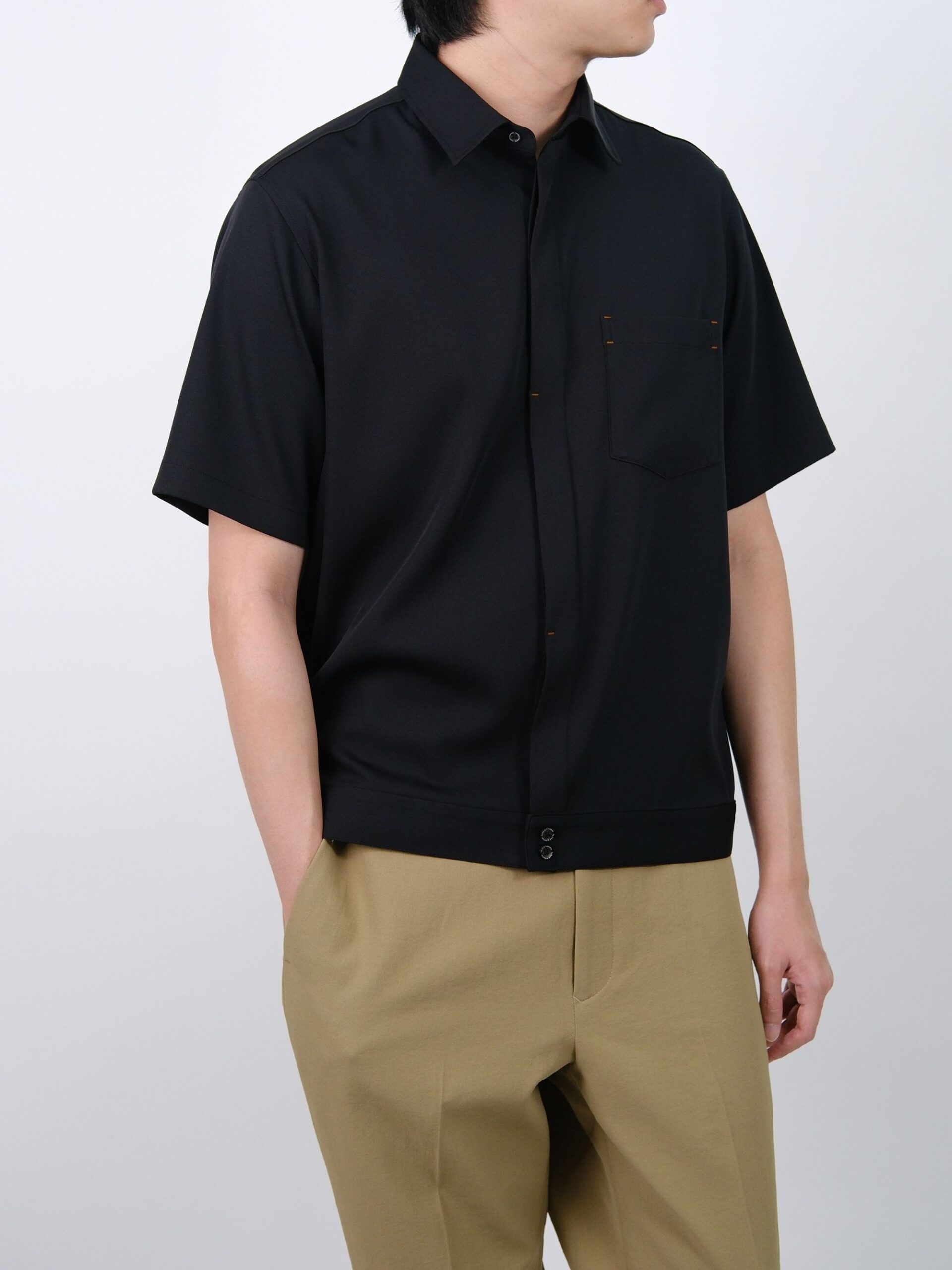 NEW INBLACK ECOBLUE STRETCH SATIN SHORT SLEEVE SHIRT (K8183301)
