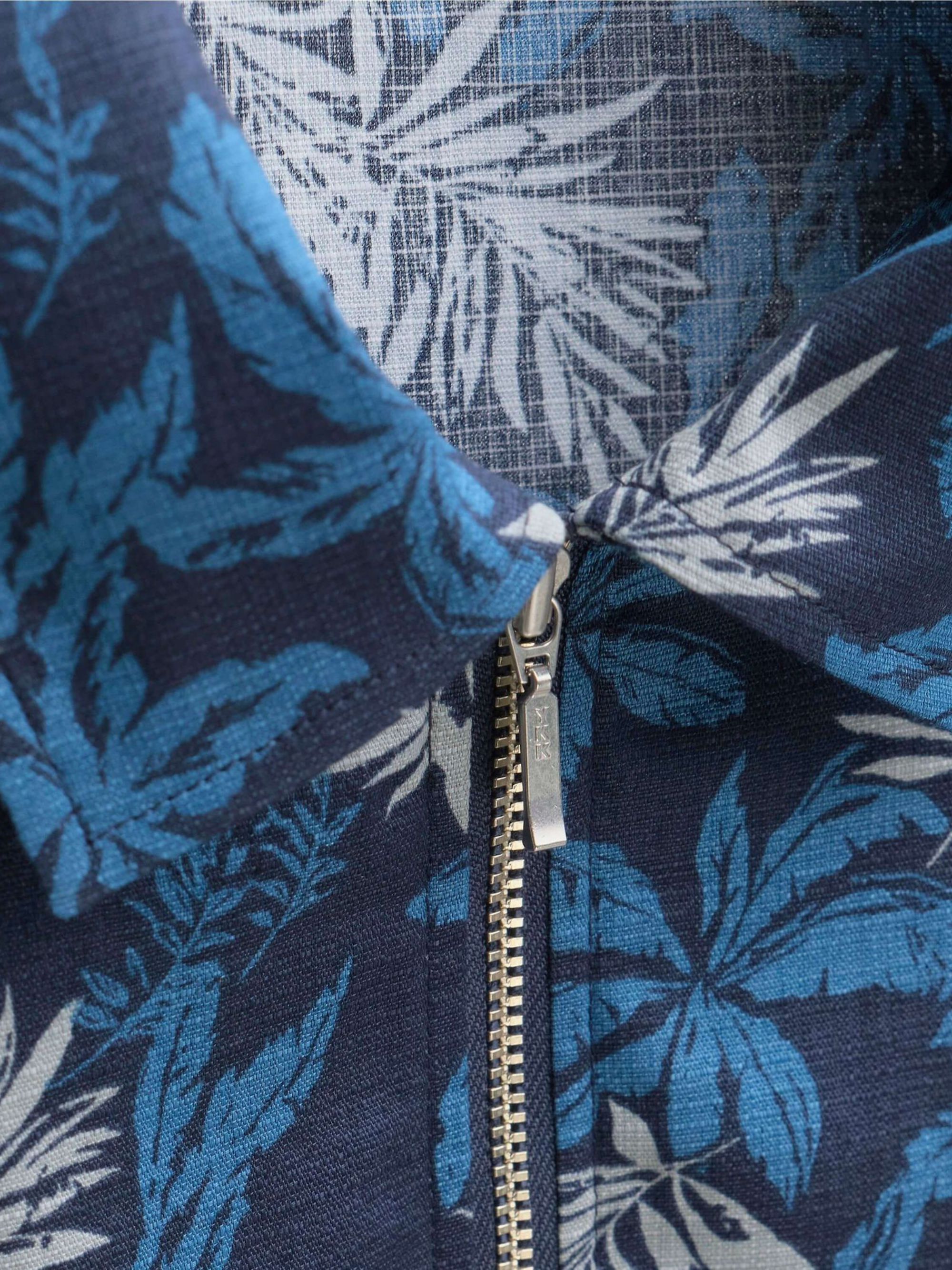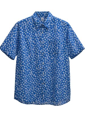 NEW INBLUE MW DENIM PRINT OPEN-COLLAR COTTON SHIRT (K8183203)
