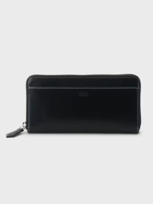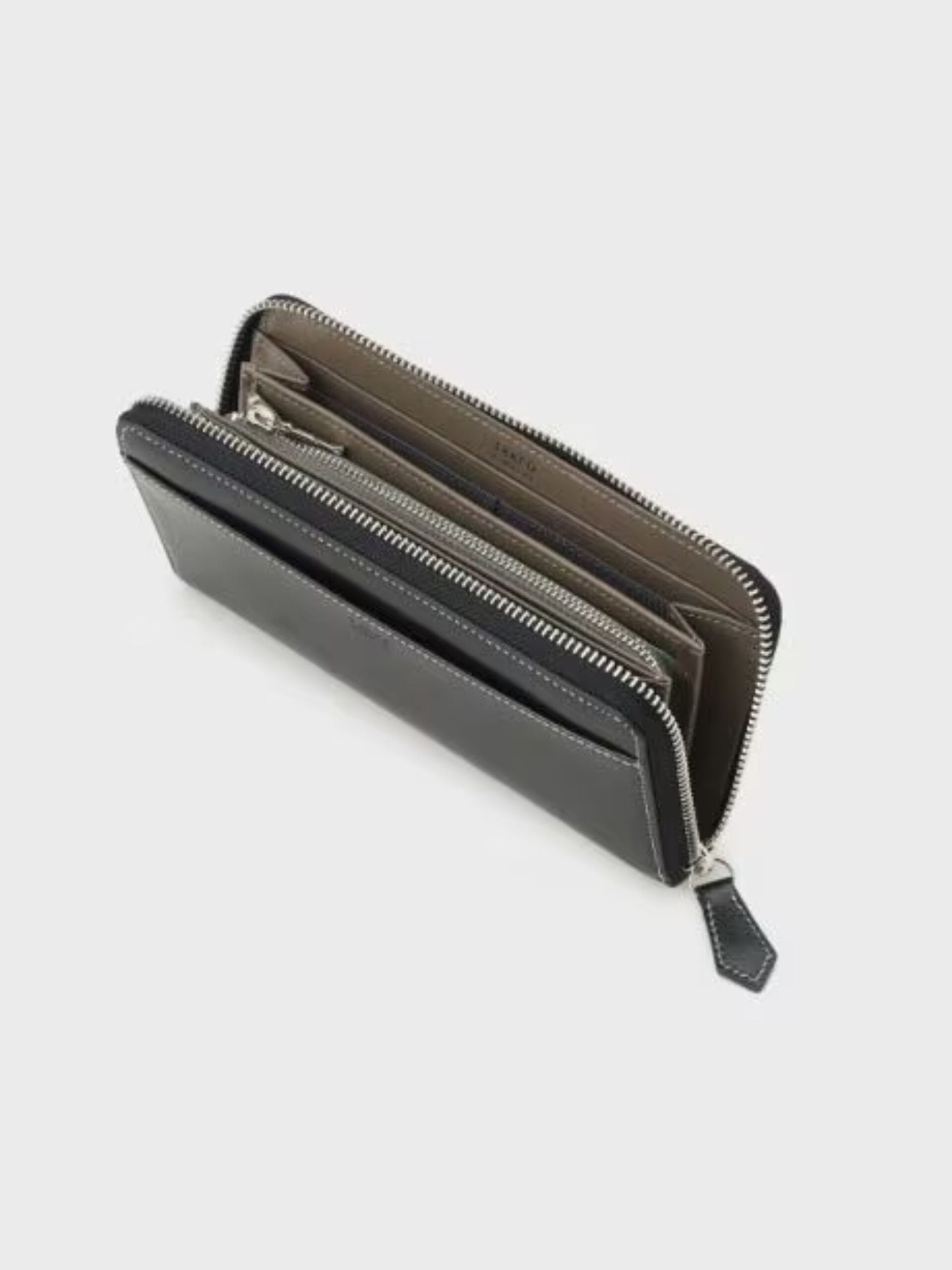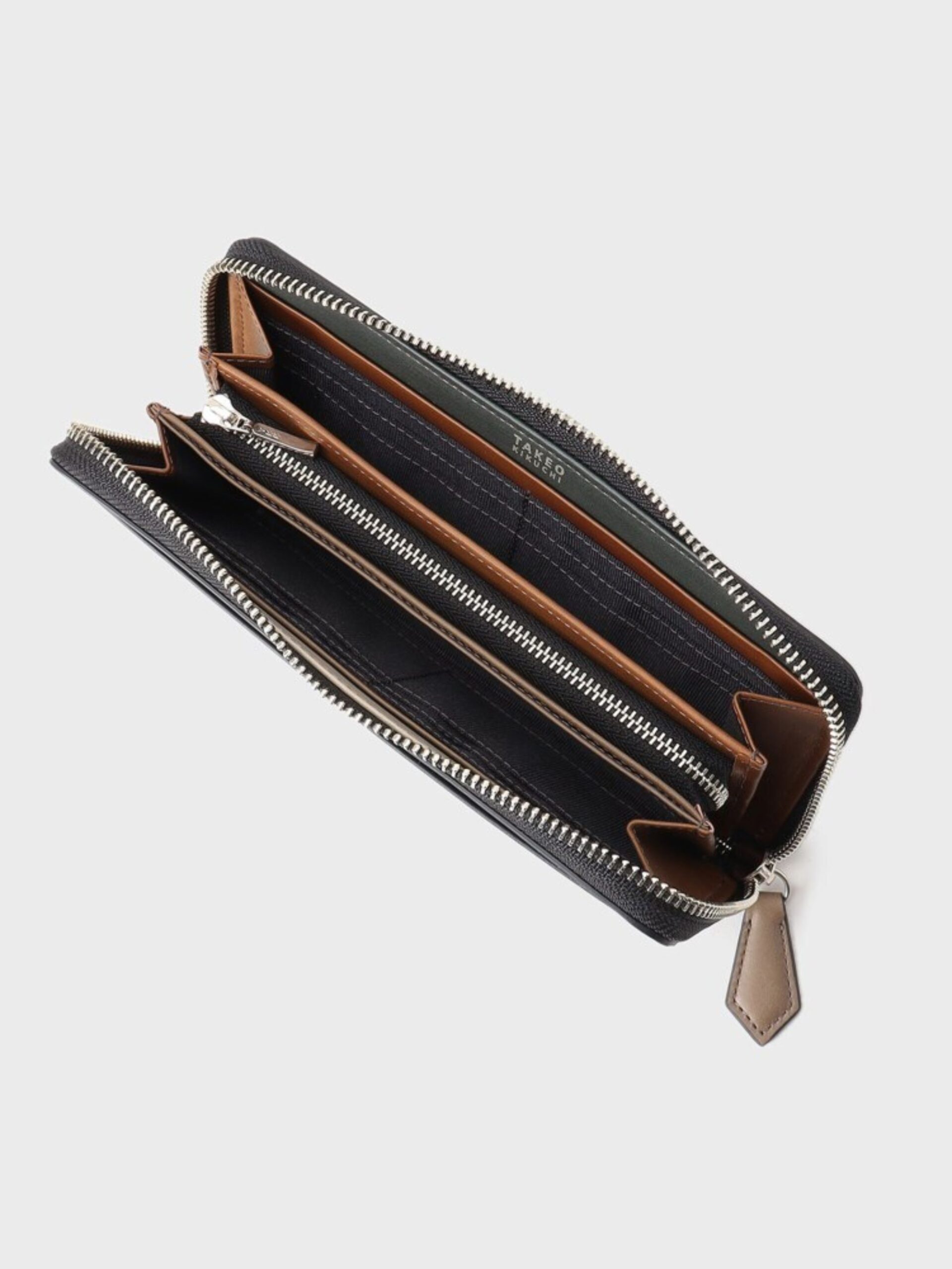 50%BLACK GOAT LEATHER ZIP LONG WALLET (07009404) *ECS