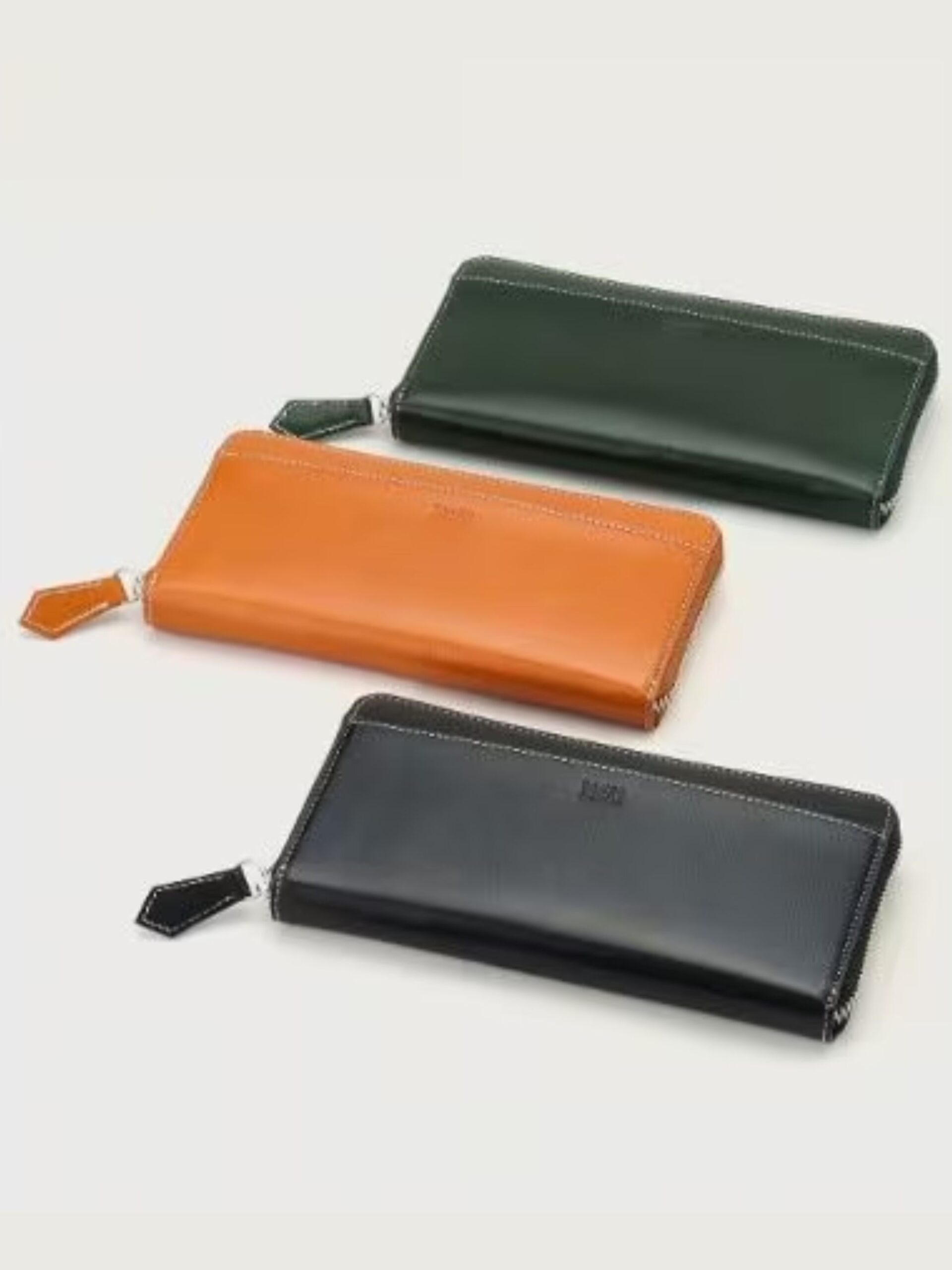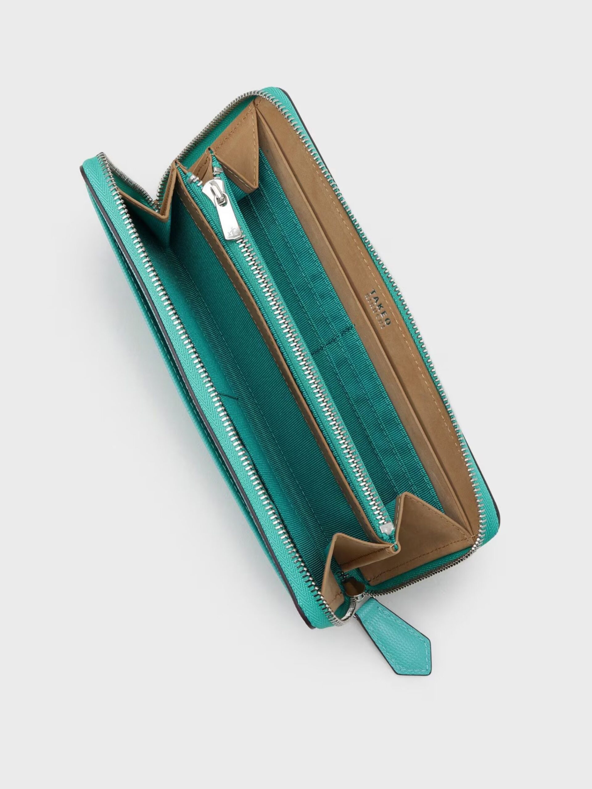 50%GREEN GOAT LEATHER ZIP LONG WALLET (07009404) *ECS