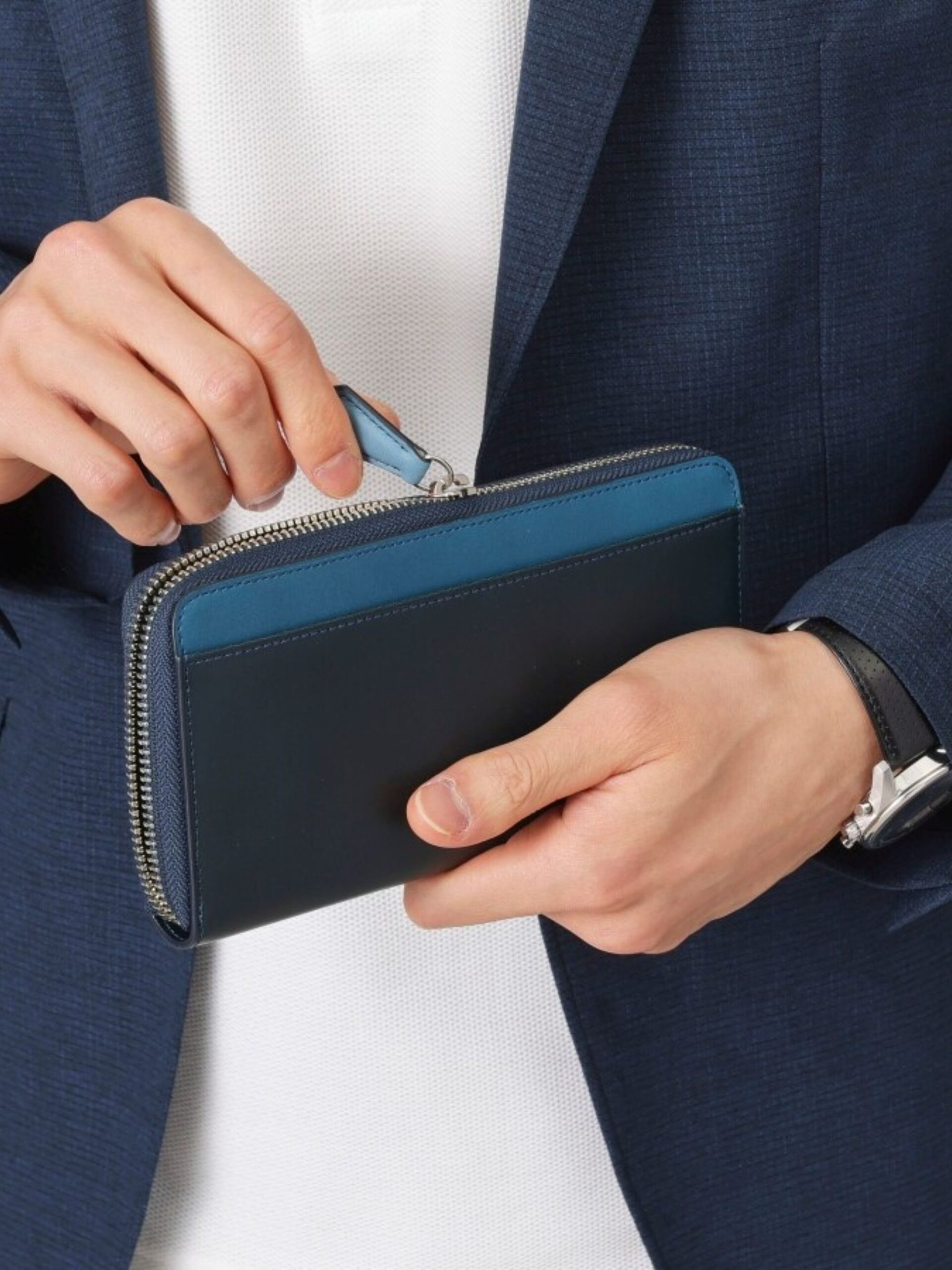 NEW INLIGHT BLUE MESH ZIP LONG WALLET (07001521)