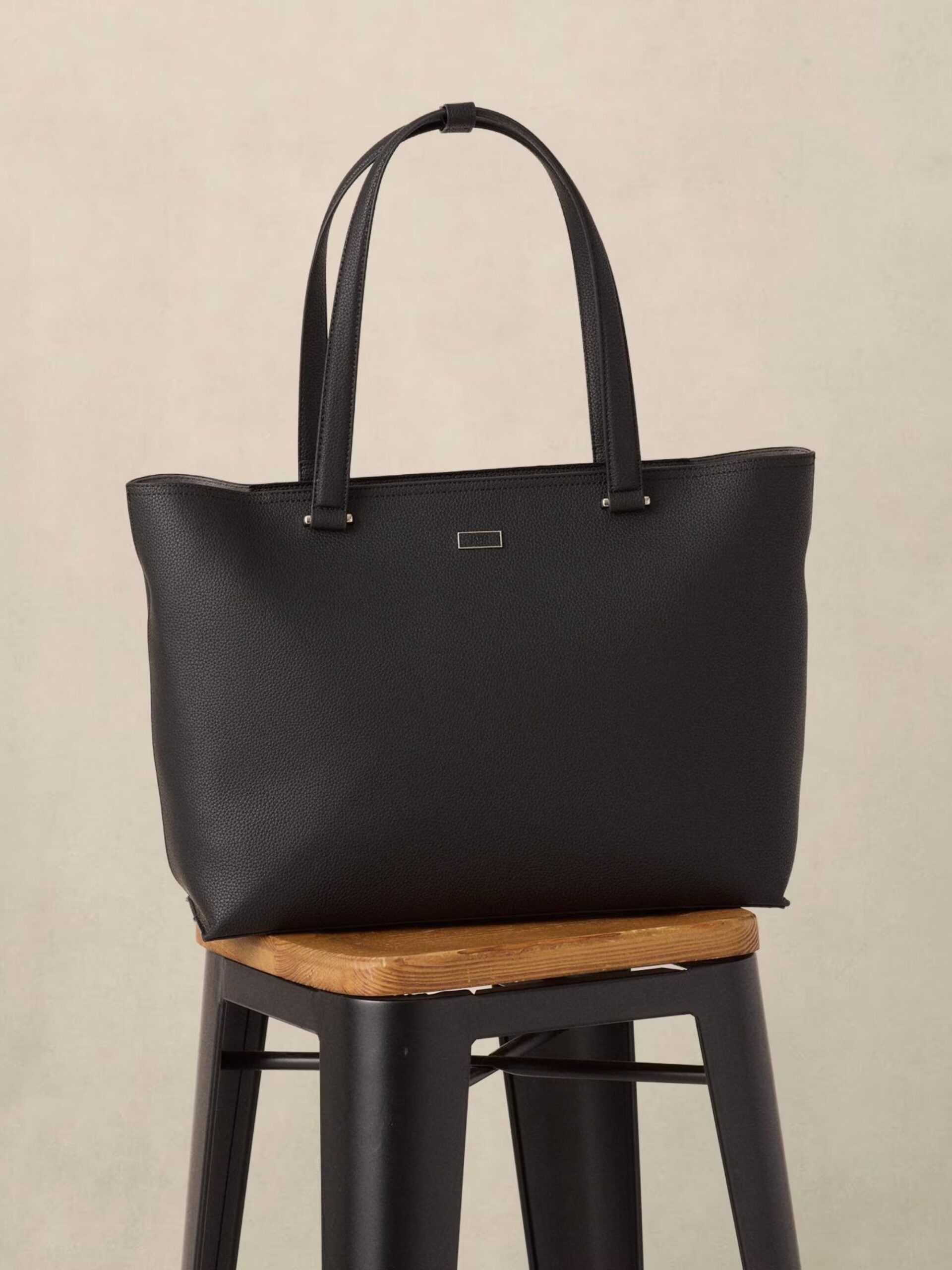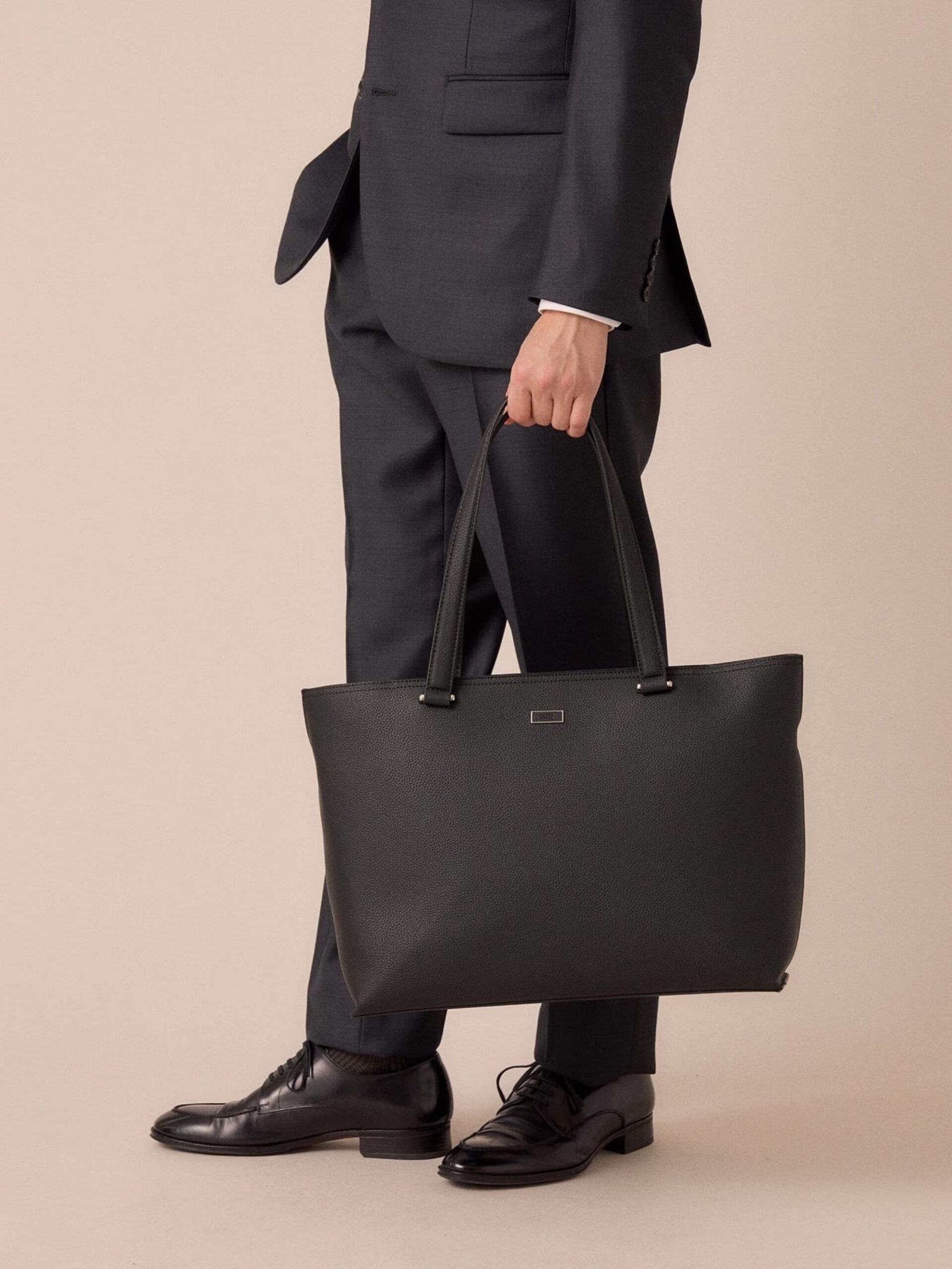 กระเป๋าโท้ทผลิตจากวัสดุบอนดิ้งระหว่างไมโครไฟเบอร์ และ โพลีเวด ทำให้ผิวสัมผัสดูเรียบหรู คลาสสิก สายหิ้วออกแบบให้ยาวเป็นพิเศษ เพื่อให้เหมาะกับการสะพายไหล่ ภายในมาพร้อมปลอกใส่ Laptop ซับในเป็นผ้าสเวดโทนสีอ่อน ตัดกับสีหนังด้านนอก