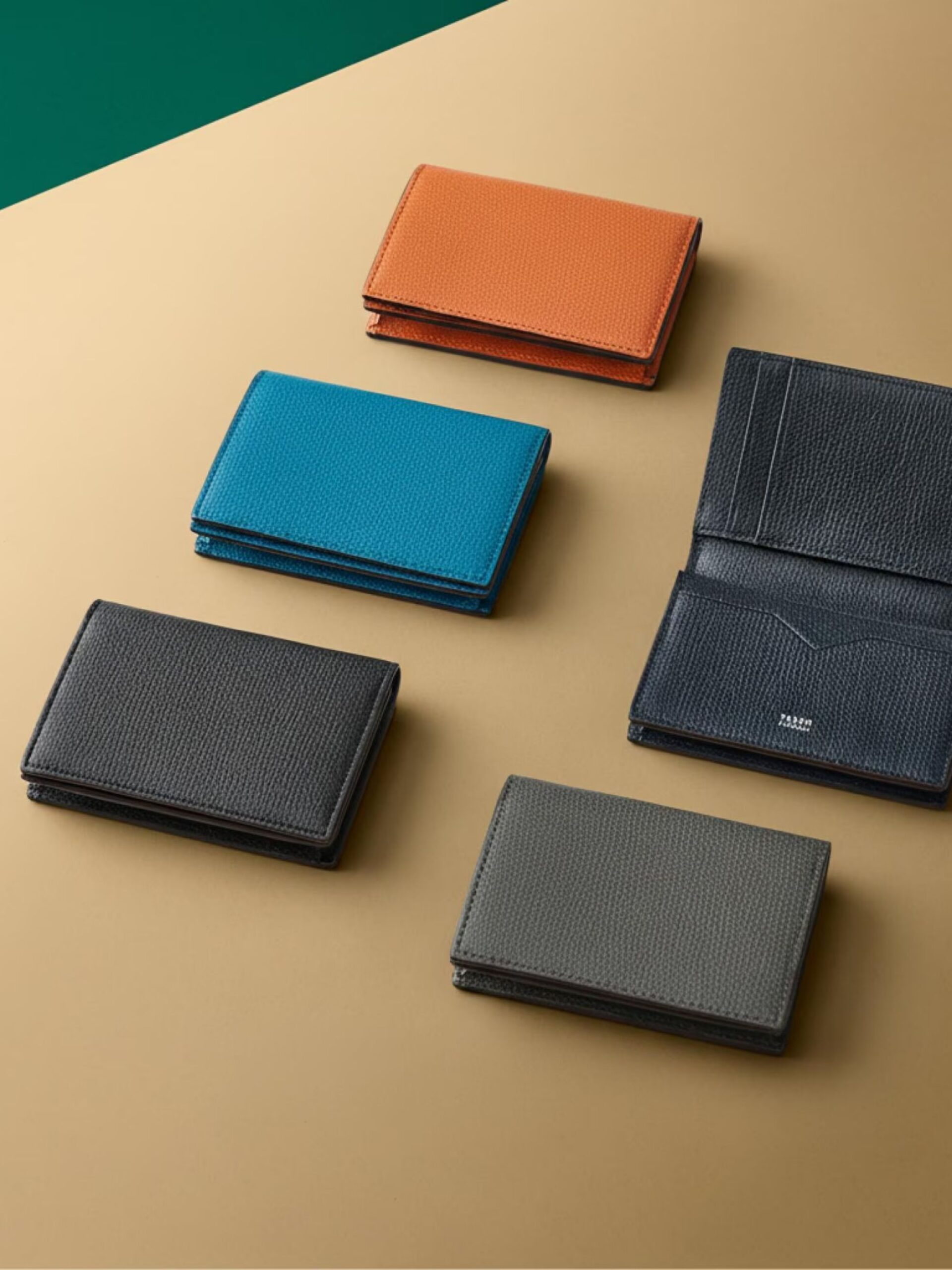 กระเป๋าใส่บัตร “Classico” หนังอิตาลี ดีไซน์เน้นการตัดขอบและการเก็บขอบและการเก็บขอบอย่างปราณีต ใช้แพตเทิร์นละเอียดเพื่อโชว์ดีเทลของหนังได้มากที่สุด ภายในใช้หนังชนิดเดียวกับด้านนอก พิมพ์ลาย Shrink ทำให้ทนทานต่อรอยขีดข่วน