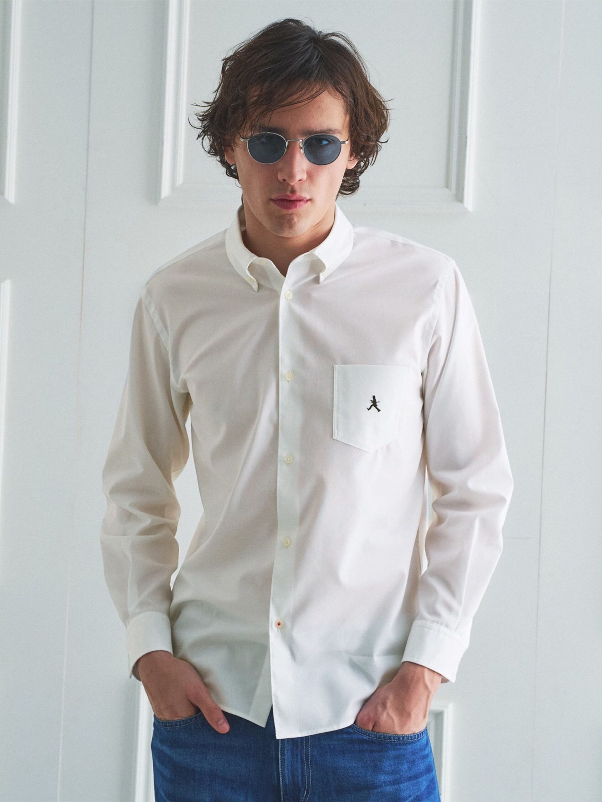 เสื้อเชิ้ตทรง Regular Fit ปกกระดุม ปักลาย “Bowler Hat Walker” บนกระเป๋าหน้าอก ช่วยเติมเอกลักษณ์ให้ไอเท็มคลาสสิกดูน่าสนใจยิ่งขึ้น