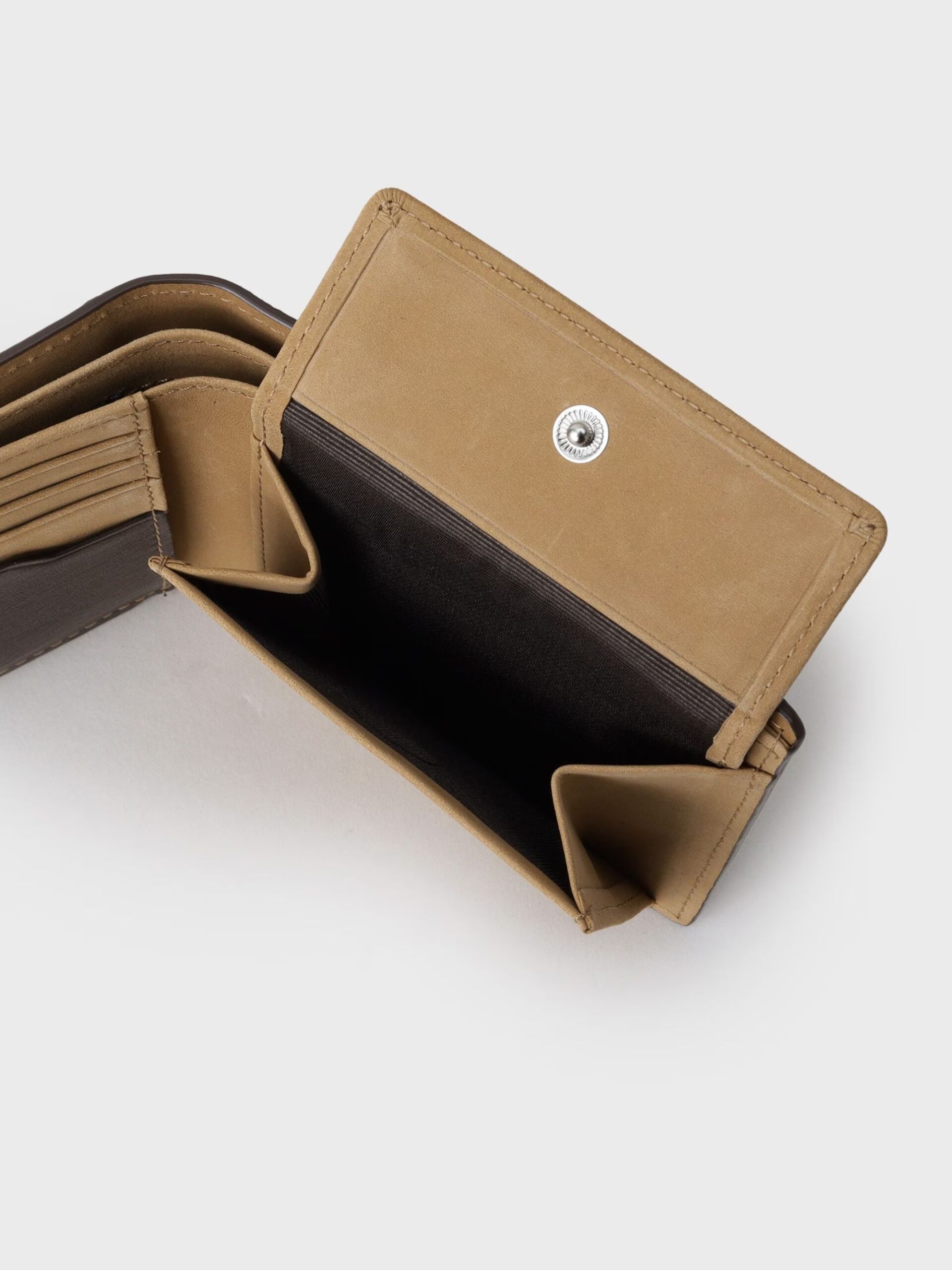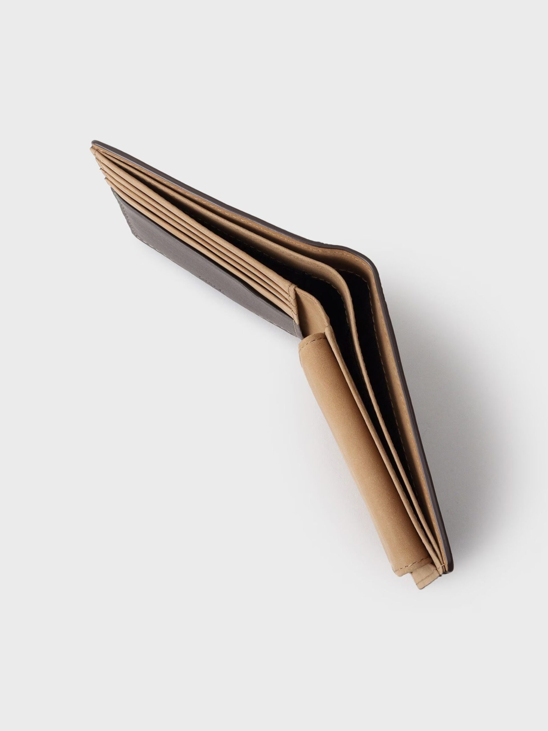 กระเป๋าสตางค์พับสองตอนผลิตจาก หนังฮิเมจิ (Himeji Leather) หนังคุณภาพสูงจากแหล่งผลิตเครื่องหนังชั้นนำของญี่ปุ่น โดดเด่นด้วยหนัง Soft Touch Kip ที่ให้สัมผัสนุ่ม ละเอียด และเรียบลื่นคล้ายผ้าไหม สะท้อนงานฝีมือของช่างหนังญี่ปุ่นอย่างแท้จริง