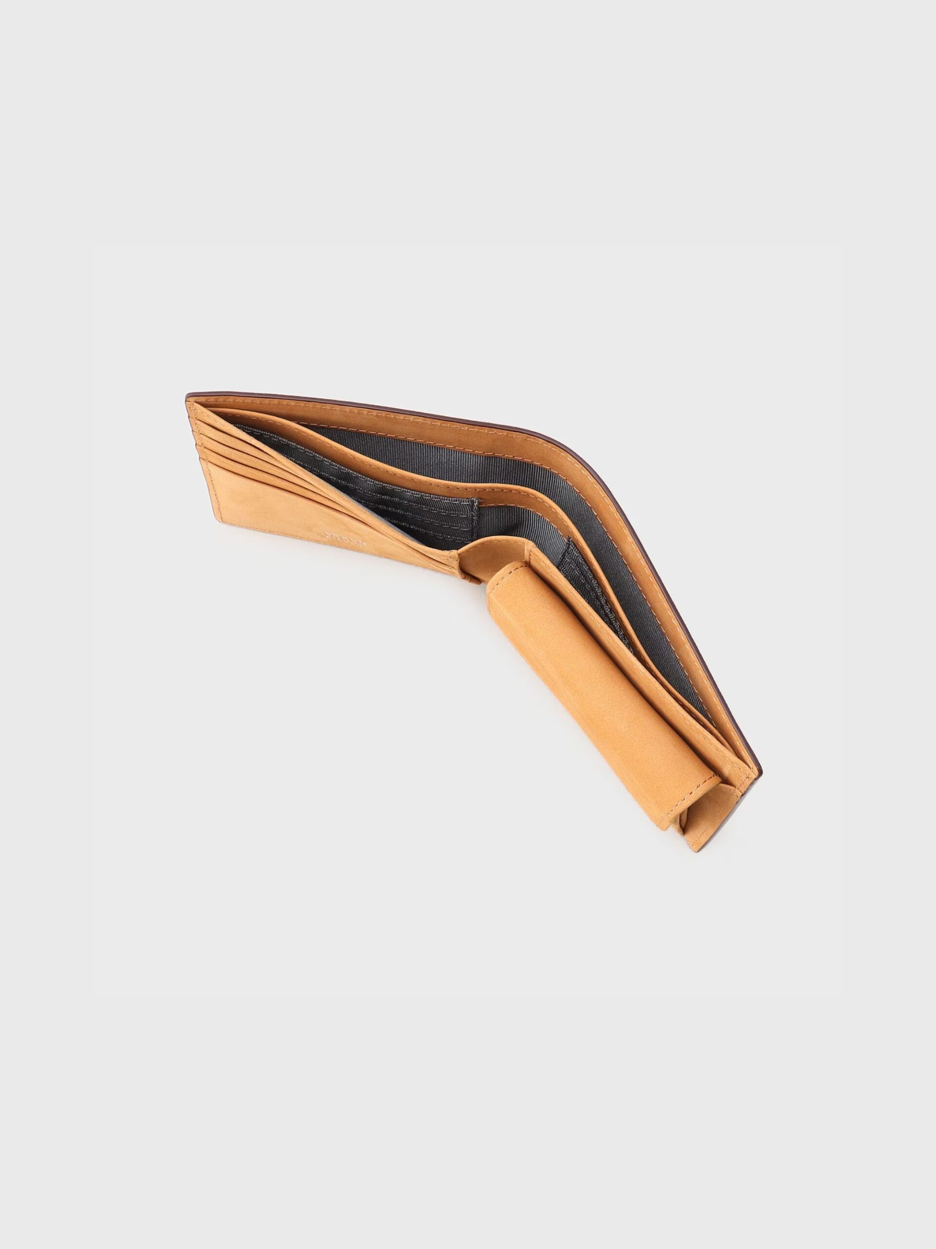 กระเป๋าสตางค์ขนาดกะทัดรัดสามารถพับได้สองทบ ขนาดพอดีมือ เป็นกระเป๋าสตางค์ที่ทำจากหนังรุ่นออริจินัลจากทาเคโอะ คิคูชิ หนังมีความนูนเล็กน้อยทำให้นุ่ม และดูหรูหรา อีกทั้งยังมีความแข็งแกร่งและทนทานได้เป็นอย่างดี มีกระเป๋าใส่เหรียญและใส่ธนบัตร และสามารถที่ใส่บัตรได้ถึง 10 ช่อง เพื่อตอบโจทย์ท่านสุภาพบุรุษนักธุรกิจ หรือท่านสุภาพบุรุษ ที่มี lifestyle เร่งรีบได้เป็นอย่างดี
