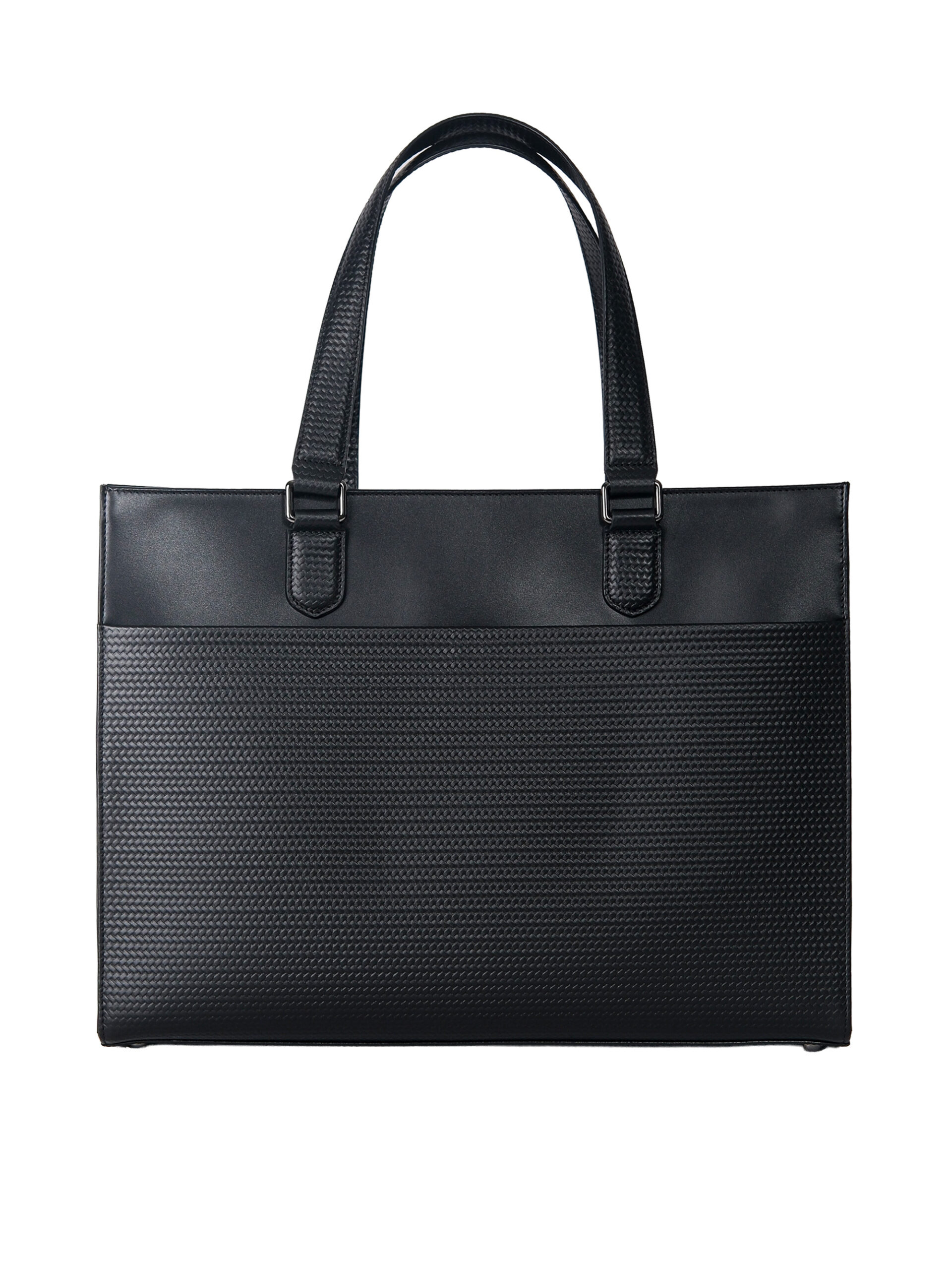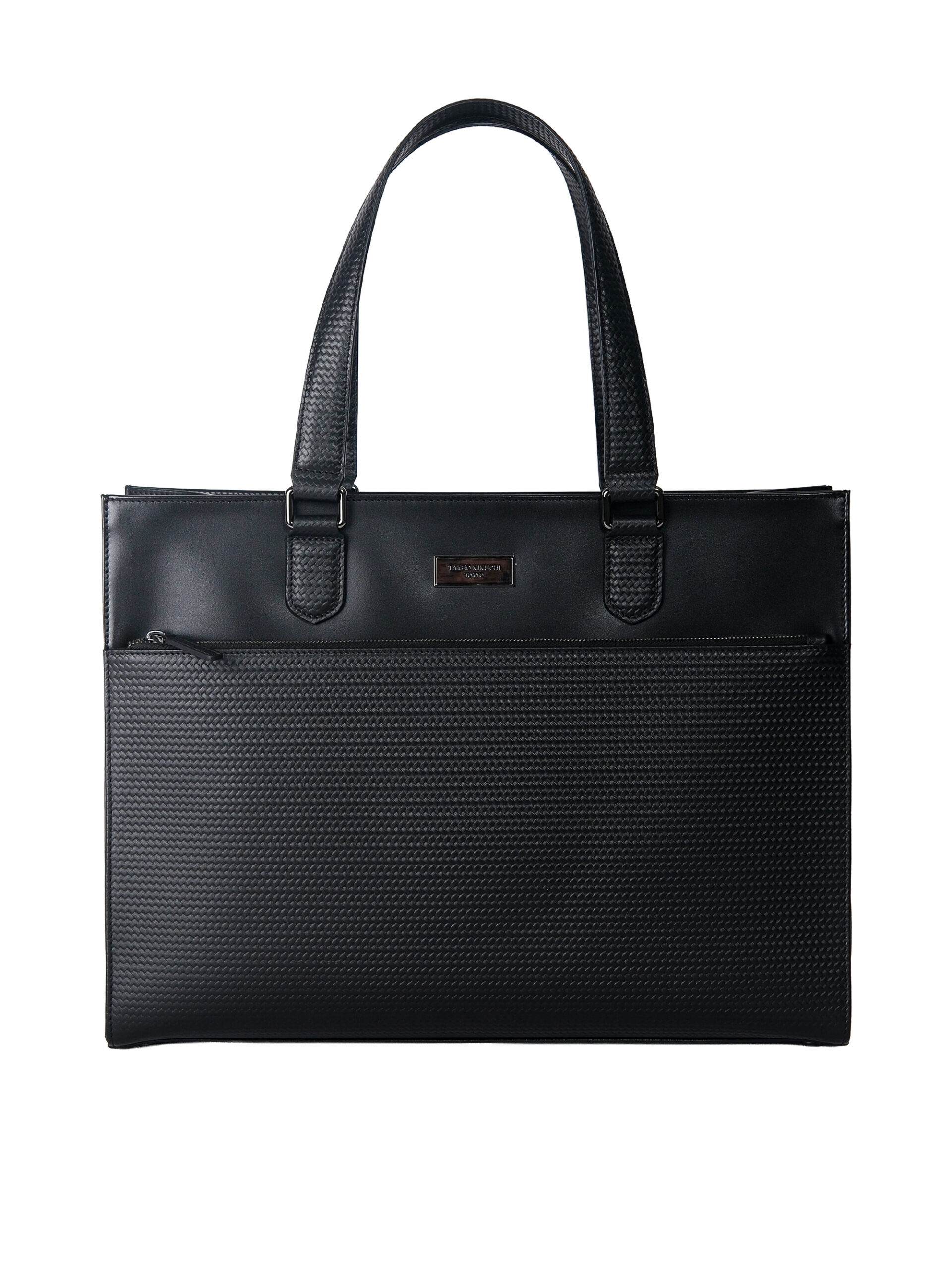 กระเป๋าโท้ท สำหรับใช้ได้ทุกโอกาสทั้งวันทำงานและวันสบาย ๆ ผลิตโดยใช้หนังสองแบบมาประกอบกัน EUROPA และ Semi-Vegetable กลางกระเป๋าด้านบนมีเพลทโลโก้สีเงินรมดำ เพิ่มความเรียบหรู