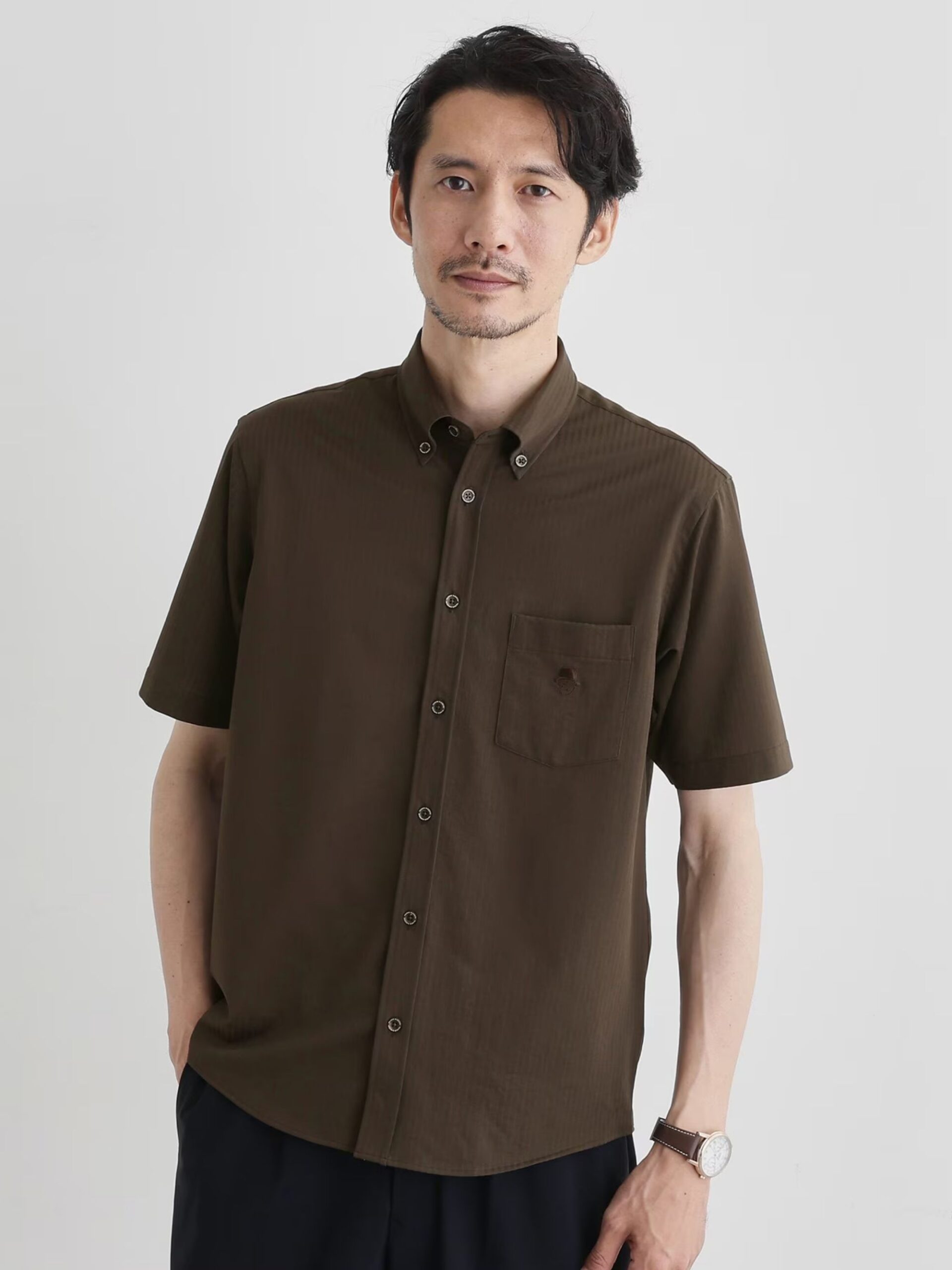 มีกระเป๋าหน้าอกและโลโก้ปักสไตล์ TAKEO KIKUCHI เป็นจุดเด่น สามารถใส่ได้ทั้งแบบเดี่ยว เป็น Outer หรือ Inner ก็ได้เช่นกัน ซักเครื่องได้แต่แนะนำให้ใส่ถุงตาข่าย