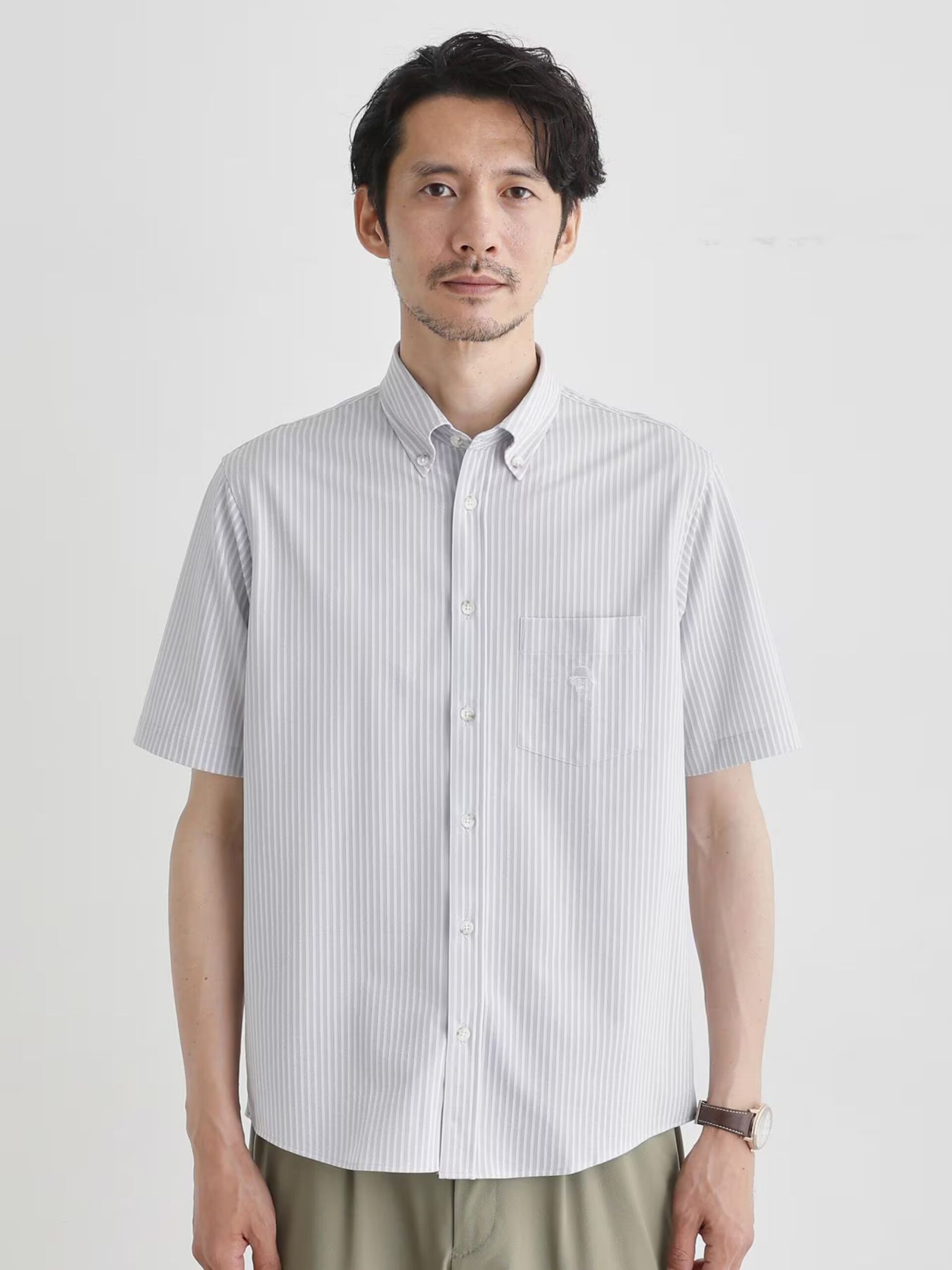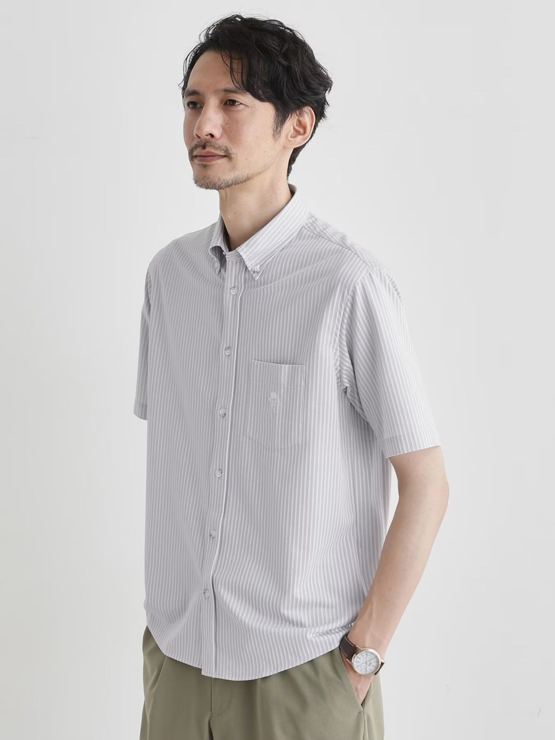 เสื้อเชิ้ตคอปก Button-down แขนสั้น ผลิตจากผ้าเจอร์ซีย์ ทำให้เหมาะกับอากาศร้อน มาพร้อมฟังก์ชั่นสัมผัสเย็น เนื้อผ้ามีผิวเนียน คงความกระชับได้ดีขณะสวมใส่ ทำให้ดูเรียบร้อย สามารถแมตช์ใช้ได้หลากหลายโอกาส