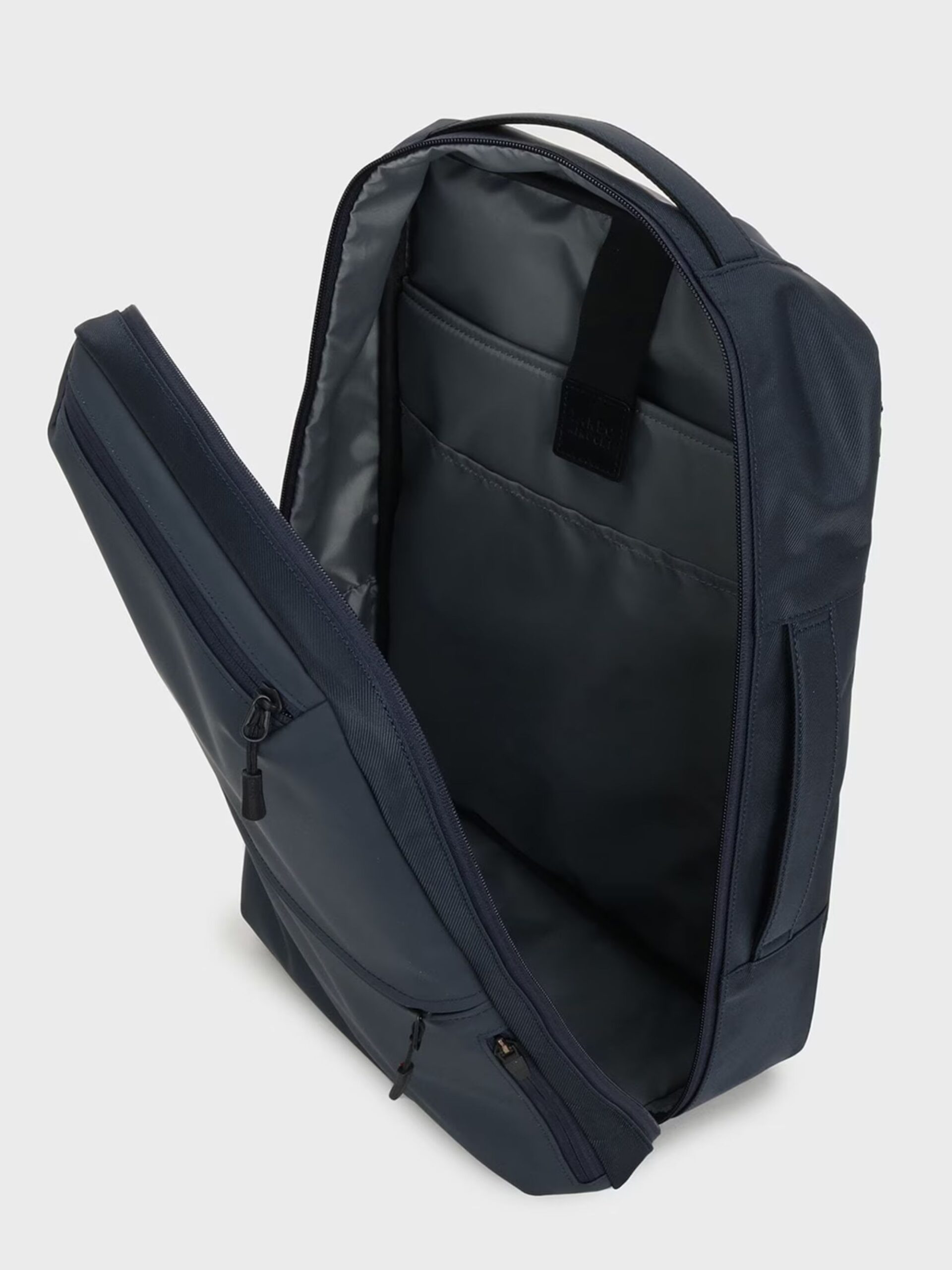 ช่องหลักของกระเป๋ามาพร้อมช่องจัดเก็บหลายช่องที่ช่วยให้มองเห็นและจัดระเบียบสิ่งของได้ง่าย รวมถึงช่องสำหรับใส่โน้ตบุ๊ก (PC Sleeve) นอกจากนี้ยังมีช่องซิปด้านหน้าพร้อมช่องย่อยสำหรับของชิ้นเล็ก และช่องผ้ากันน้ำด้านล่างสำหรับใส่ขวดน้ำขนาด 500 มล. หรือร่มพับขนาดเล็ก อีกทั้งยังมีซิปด้านหลังแบบ Quick Access ที่ช่วยให้สามารถหยิบโน้ตบุ๊กได้สะดวกโดยไม่ต้องเปิดช่องหลัก - แผ่นรองหลังใช้ผ้าตาข่ายละเอียด ช่วยระบายอากาศและเพิ่มความสบายในการสะพาย พร้อมฟังก์ชัน Trolley Sleeve สำหรับสอดกับคันลากกระเป๋าเดินทาง เหมาะสำหรับการเดินทาง