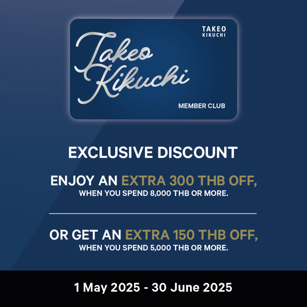 ・ลูกค้าสามารถสมัครสมาชิกได้ ผ่านช่องทาง TAKEO KIKUCHI LINE Official Account @takeokikuchi หรือ คลิกที่นี่เพื่อสมัคร