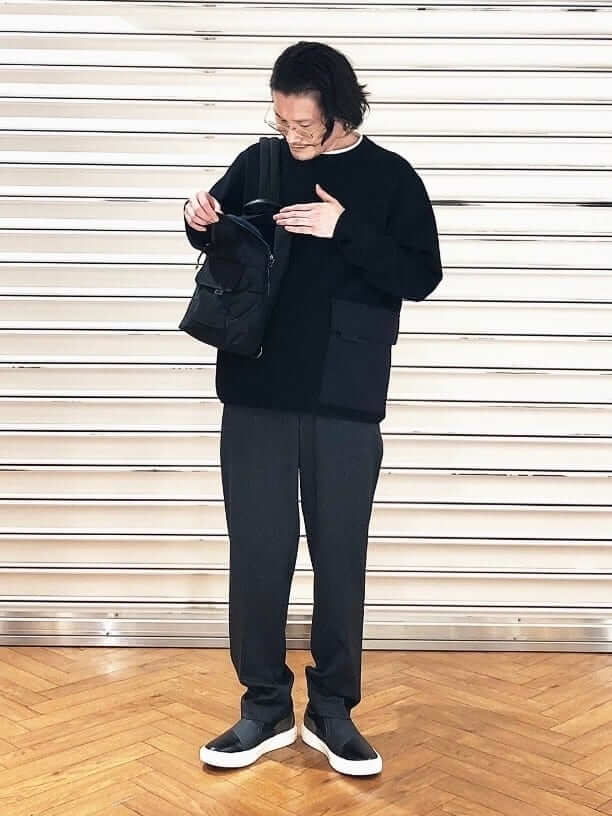 Bag : BLACK LEATHER COMBI NYLON BACKPACK