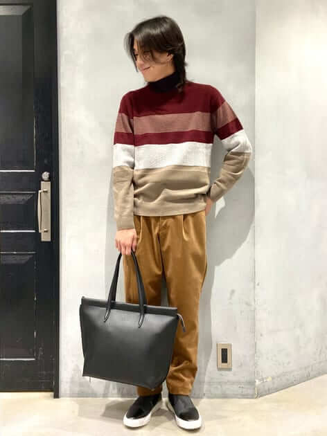 Bag : BLACK LINE BLOCKING LEATHER TOTE BAG