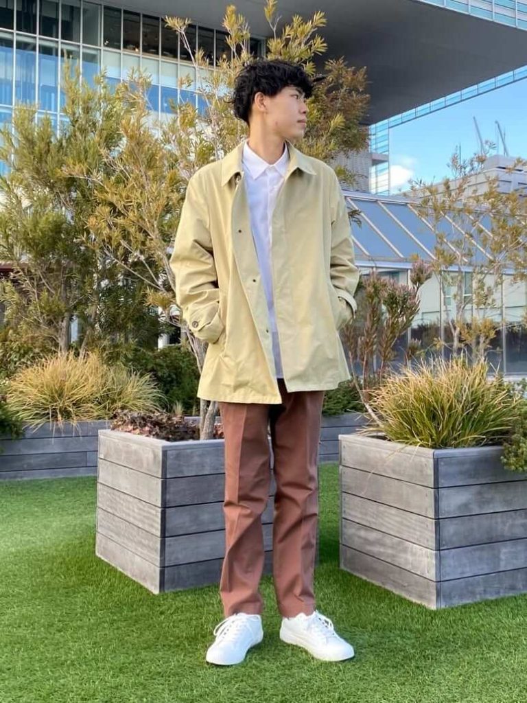 Top : BEIGE THREE STITCHED OXFORD PULLOVER SHIRT