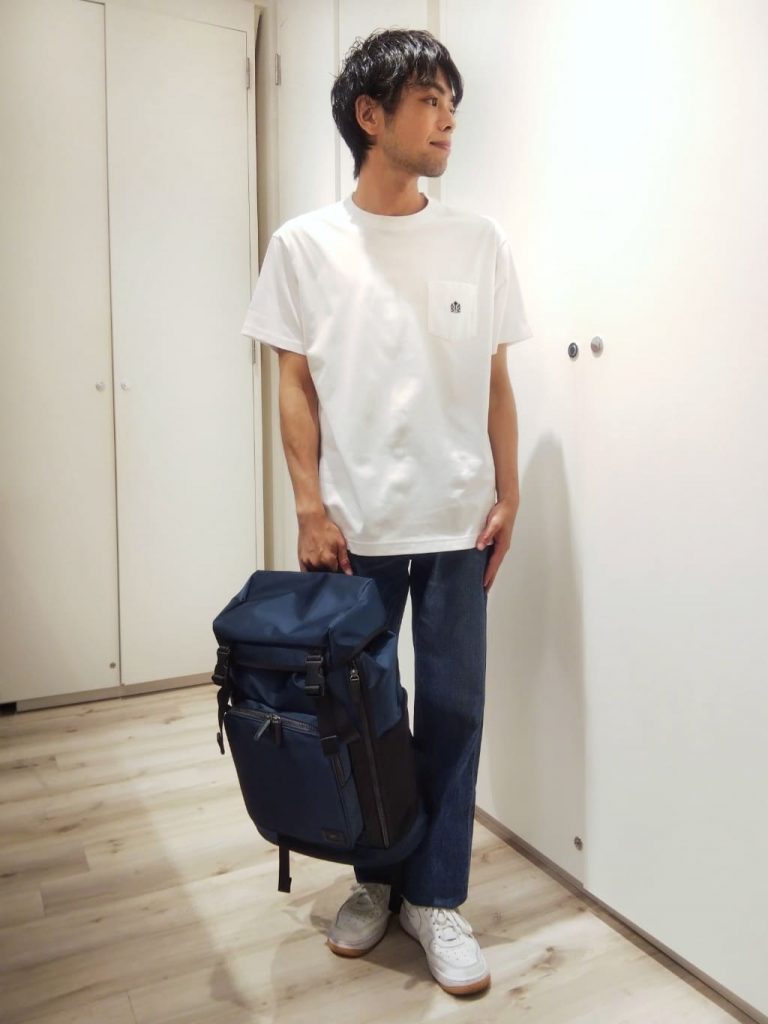 Top : WHITE UV-CUT GRADIENT EMB POCKET T-SHIRT