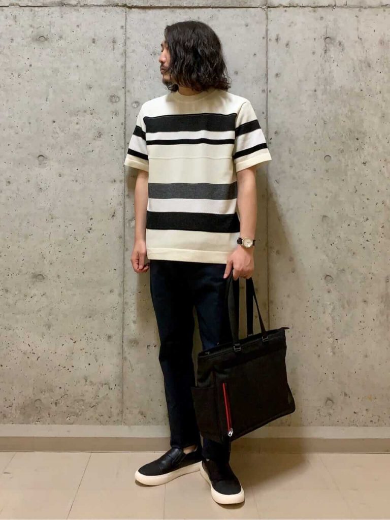 Top : MIJ HEMP-BLEND BORDER KNIT TSHIRT