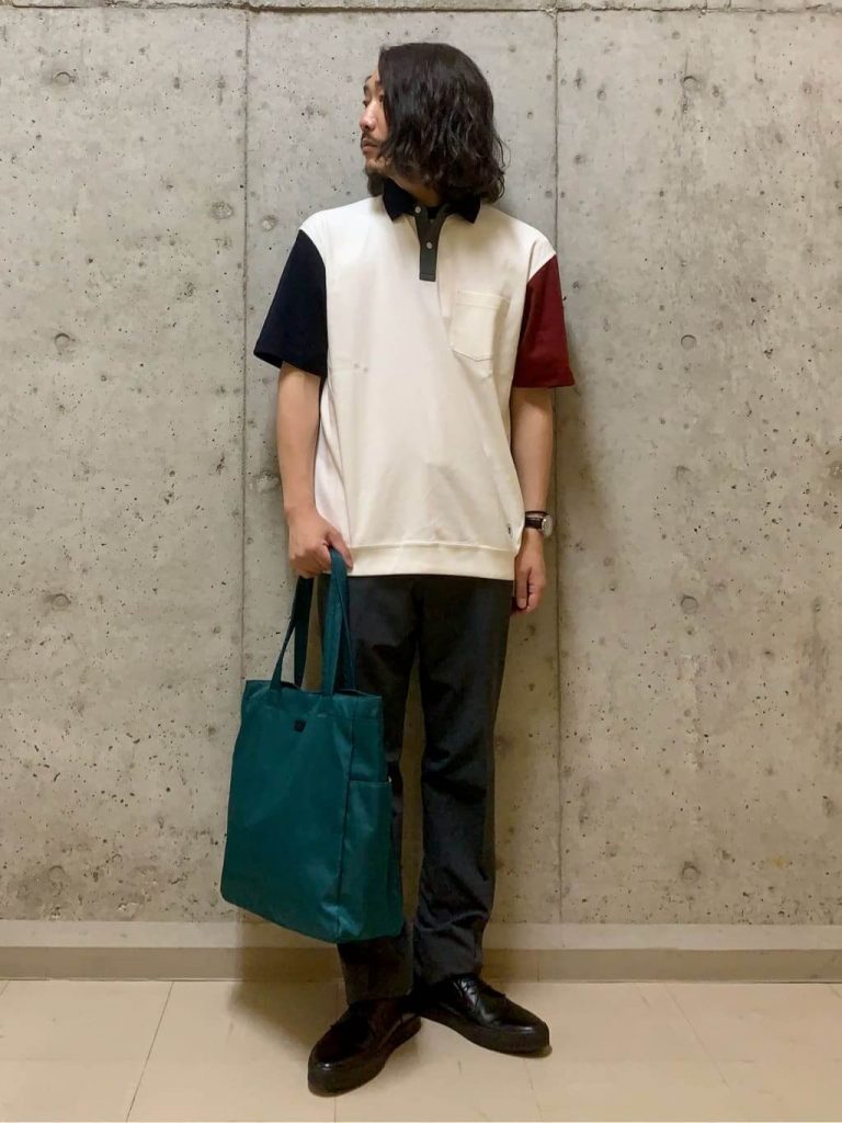 Bag : GREEN LINE BLOCKING LEATHER TOTE BAG